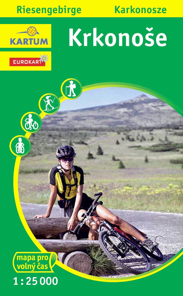 Další mapa z edice map pro volný čas pokrývá celé území Národního parku Krkonoše. Mapa obsahuje značené turistické trasy, cyklotrasy, trasy pro vozíčkáře, koňské cesty, lyžařské běžecké trasy, sáňkařské dráhy, plochy pro paragliding, snowparky a mnoho dalšího. Na mapě jsou samozřejmě zobrazena všechna hlavní krkonošská střediska i s většinou hotelů a penzionů. Mapa je ve velice podrobném měřítku 1:25 000, které umožňuje snadnou orientaci v terénu i mimo značené cesty. Souřadnicový systém WGS 84 a UTM.